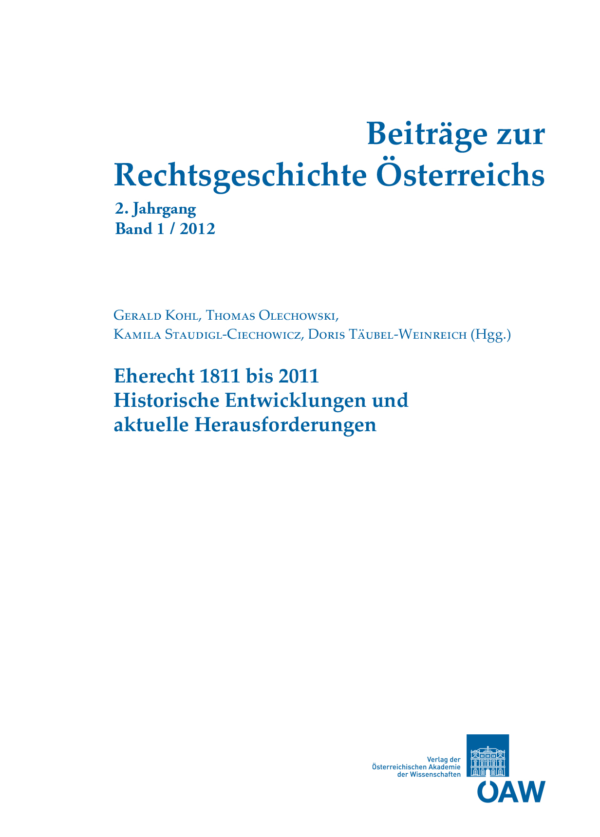 Beiträge zur Rechtsgeschichte Österreichs, 2. Jahrgang, Heft 1/2012